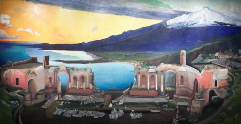 | Keywords: Ruins of the Greek Theatre at Taormina.jpg Artwork Creator Tivadar Csontváry Kosztka 1904 oil on canvas Janus Pannonius Múzeum Pécs object history credit line own photo by Szilas Other versions Commonist PD-old-auto 1919 1904 paintings in Hungary Paintings by Tivadar Csontváry Kosztka 20th-century oil on canvas paintings in Hungary 1904 oil on canvas paintings Ancient Greek theatre of Taormina in art Paintings in the Janus Pannonius Museum Pécs | ||||