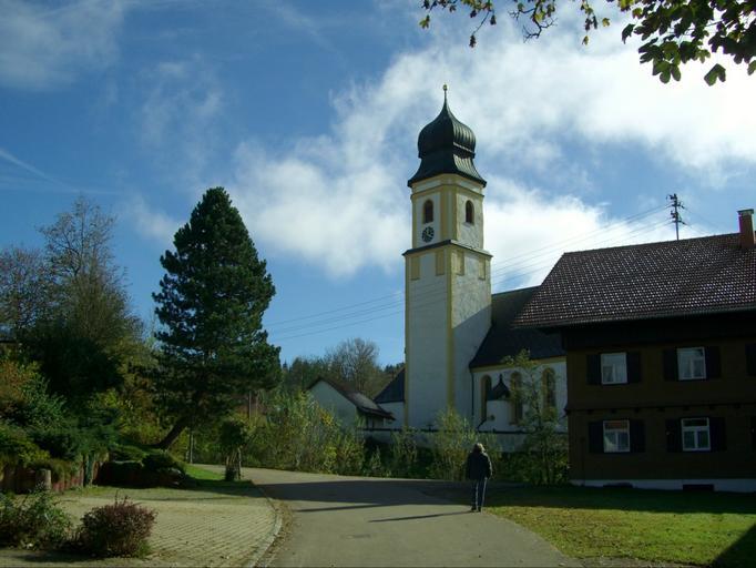Keywords: ruins steeple church st peter and paul allgäu blue sky