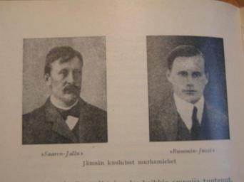 Keywords: Rummi ja Saari.JPG en Finnish civil war notorious mass murderers Johannes From and Jalmari Saari fi Suomen sisällissodan aikaiset joukkomurhaajat Jalmari Saari ja Johannes From Arvid Luhtakannan teoksen Suomen punakaarti-kuvitusta Suomen punakaarti Author 1917 PD-old Red guards Finland |