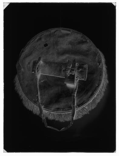 Keywords: Rundsköld - Livrustkammaren - 59939-negative.tif LSH artwork sv Svagt konisk sköld mjukt övergående i konisk spets med rundad skadad ände med hål för knopp eller dyl Omvikt räfflad kant <br/><br/>Etsad yttäckande ornering i form av ytterst en ring b 70 mm med en löpande bildfris avbruten av sex 8-formiga fält med flätmönster Innanför ringen ett komplicerat flätmönster av 10 mm breda band allt mot prickad bakgrund <br/>Dekor i ringen fält 1 I mitten enhörning vänd v mot sittande kvinna som med h hand håller om mulen och med v hand om manen på enhörningen till v hund Till h om enhörningen två springande hundar och en stående man i lårkort dräkt i h hand hillebard Bakgrund i form av landskap med träd över enhörningen en fågel <br/>Fält 2 Landskap med till v jägare som lägger an bössa med trädstöd mot fågel fyra hundar till h drevkarl med spjut <br/>Fält 3 I mitten hus och därframför en ringlande väg till v man med bardisan två hundar till h stenbock och hund <br/>Fält 4 Landskap med träd i mitten vildsvin till h två hundar till v jägare med vildsvinsspjut och hund <br/>Fält 5 Landskap med träd till h björn vänd åt v över björnen en åt h flygande fågel i mitten två hundar till v stående man med v hand lyft blåser i jakthorn bakom mannen två hundar <br/>Fält 6 I mitten hjort till h man med fällt bardisanliknande spjut hund till v två hundar <br/><br/>Dekor på mittpartiet <br/>I rankverket utsparat sex sköldformiga fält med stående människor <br/>Sköld 1 Kvinna i rustning och långkjol profil v båda händer lyftade och hållande skål flygande band <br/>Sköld 2 Man i antikiserande rustning profil h stödjande sig på bardisan <br/>Sköld 3 Kvinna som i sköld 1 v arm håller palmblad som vilar på axeln h hand en på marken stående sköld <br/>Sköld 4 Man som i sköld 2 stödjer sig på ett yxliknande stångvapen <br/>Sköld 5 Kvinna som i sköld 1 i h hand yxliknande stångvapen <br/>Sköld 6 Man som i sköld 2 v hand stödjer sig på sköld <br/><br/>Bandflätningen löper mellan sköldarna samman i maskaroner banden nertill utgår ur munnen Ovanför maskaronerna fält med fåglar varav 2 ugglor nedanför maskaronerna utefter ytterringen delfiner I övrigt i de utsparade fälten rustningsdelar ibland i form av trofégrupper harar urnor mm <br/><br/>Innanför den räfflade kanten fäst en röd silkesfrans b ca 70 mm och därpå en i nätmönster flätad guldfrans Fransarna fästade med nitar med välvda mässingshuvuden <br/><br/>Två + två nithuvuden för bärremmarna höga svagt koniska huvuden med skruvskåra och filade linjer <br/><br/>Skölden invändigt klädd med rött mycket slitet läder På mitten fäst en rektangulär platta l 375 mm b 85-105 mm Därunder fäst dels handrem i form av rep klätt med läder samt en bred spännrem b ca 80 mm urspr med två spänntampar den yttre saknas En oval sölja av förgyllt stål fäst på läderrem l 75 mm b 30 mm På ena sidans nitar fäst bärrem b 30 mm o l ca 85 mm med likadan sölja som spännremmens söljremmens l 190 mm original caption rundsköld - LRK 9736 Erövringen av Warszawa Karl X Gustavs död och begravning ca other date - 1550 1600 steel - silk Färg röd material silke - gold thread - leather g 4050 size mm 585 120 LRK Karl VIII Knutsson Bonde av Sverige kung Wawel 1000-2000 2000 Eagle and Three Crowns 2002 Eagle and Three Crowns 2002 Örnen och de tre kronorna 2003 Krigsbyte 2007-2008 place of origin original filename LN_A00157_000157 45171 inventory number LRK 9736 59939 CC0 Rundsköld - Livrustkammaren - 59939 tif <gallery caption Different images of same object > File Rundsköld - Livrustkammaren - 14 tif File Rundsköld Italien 1500-talets andra hälft - Livrustkammaren - 44034 tif </gallery> Shield images from Livrustkammaren |