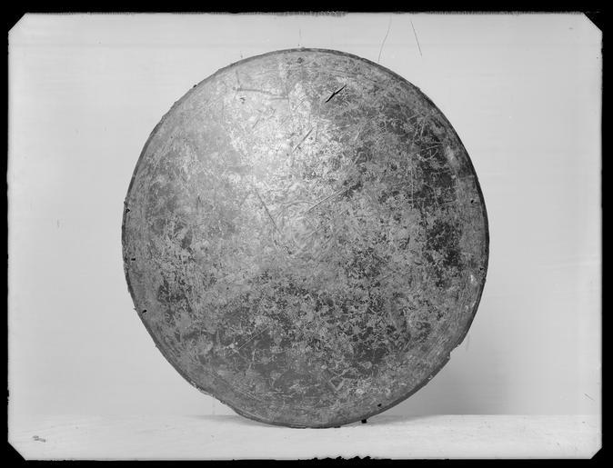| Keywords: Rundsköld Persien - Livrustkammaren - 8575.tif LSH artwork sv Rund sköld av trä överklädd med skinn på utsidan helt övermålad med silverfärg Ovanpå denna rank- och blomdekor med svarta konturer samt ifylld med röd färg och guldfärg Utmed kanten en rankbård mot guldbotten Yttersta kanten svartmålad <br/><br/>Insidan med svart kant där innanför tre gula ränder och skinnet I övrigt med ett gult flammigt mönster samt armrem och handtag av mörkbrunt läder mellan dessa en rektangulär skinnplatta med otydlig text i skrivstil Disse Locadtto i -- altia A - mer Se i Legna fe ---- Vid handtaget rektangulär sölja av stål Kanten genombruten med sex runda hål original caption rundsköld Persien - LRK 9354 wood - hide g 2180 size mm 572 LRK Alexander Ludvig Soldin Grosshandlare place of origin Persia original filename LN_A00161_000161 45992 inventory number LRK 9354 8575 CC0 Rundsköld Persien - Livrustkammaren - 8575-negative tif Media contributed by LSH without any categories Media contributed by LSH unmatched objKeyword Shield images from Livrustkammaren Media contributed by LSH 2014-06 |