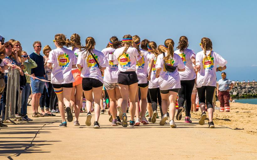 Keywords: running runners beach jogging group legs backside