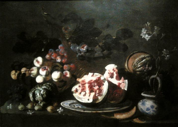 Keywords: Ruoppolo Still life with fruit.jpg Artwork Creator Giovanni Battista Ruoppolo secondhalf other date century 17 oil canvas cm 91 5 131 Institution National Museum Warsaw accession number M Ob 674 184880 object history credit line ProvenanceEvent 1939 transfer National Museum Warsaw Society of Friends of Science Vilnius Jan Białostocki Maria Murdzeńska Danuta Książkiewicz Jan Kuglin 1970 Catalogue of paintings foreign schools Vol 2 National Museum in Warsaw cat no 1671 p 270 own BurgererSF See below PD-old-100 DEFAULTSORT 1650 after; Still life with fruit Giovanni Battista Ruoppolo Italian paintings in the National Museum in Warsaw Still life paintings in the National Museum in Warsaw 17th-century still life paintings of fruits Paintings of melons |