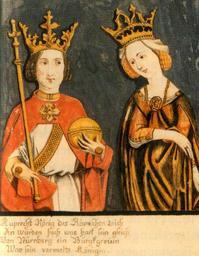 Keywords: Ruprecht III (Pfalz).jpg Description Ruprecht III elector of the Palatinate from 1398 to 1410 and king of the Holy Roman Empire <br> Ruprecht König des Römischen Reich<br> An Würden hoch war hart sein gleich<br> Von Nürnberg ein Burgkgrevin<br> War sein vermelte Königin <br> Uploaded by --Immanuel Giel 11 59 30 June 2006 UTC PD-old Ruprecht von der Pfalz 1690 about Elisabeth von Hohenzollern-Nürnberg 1690 about House of Wittelsbach 1690 about Globus cruciger in art 1690 about Portraits wearing crowns 1690 about Sceptres in art 1690 about |