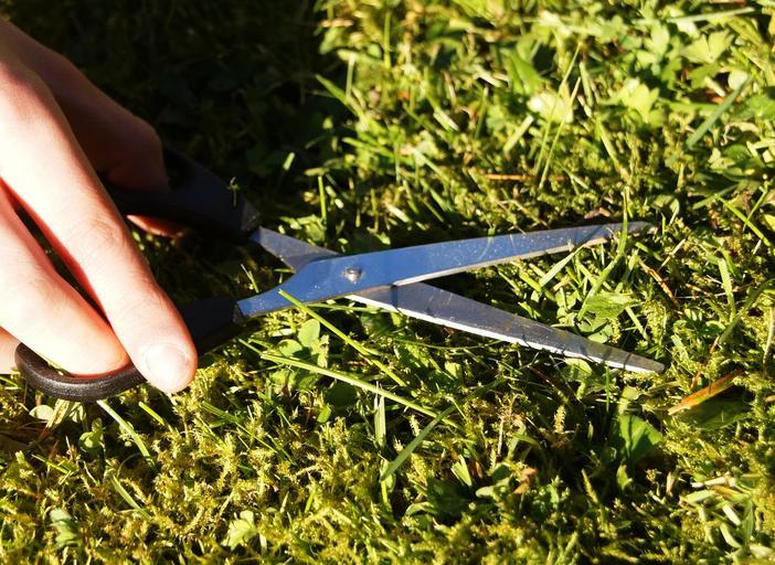 Keywords: rush cut mow grass green meticulous english lawn funny scissors hand labor grass surface