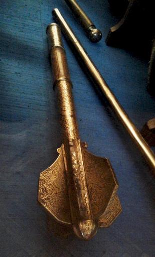| Keywords: Russia Flanged mace 01.jpg Russia ca 1560 gilt iron Institution Kunsthistorisches Museum accession number C 68 object history Pskov < 1582-02-01 gift Ferdinand II Innsbruck Stephen Báthory Kraków credit line The mace was one of the war booties captured by the Stephen Báthory King of Poland during the Siege of Pskov The mace of Muscovy millitary leader with 6 or 7 metal flanges called feathers one of several Russian maces donated by the King of Poland C 73 A 2323 Zdzisław Żygulski 2008 Batory pod Pskowem i zbroja królewska Kontekst historyczny in Urbs celeberrima księga pamiątkowa na 750-lecie lokacji Krakowa p 396 401-402 own See below cc-zero DEFAULTSORT 1560 circa; Flanged mace Flanged mace Kunsthistorisches Museum |