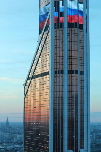 Keywords: russia moscow new city skyscrapers skyline glass facade flag