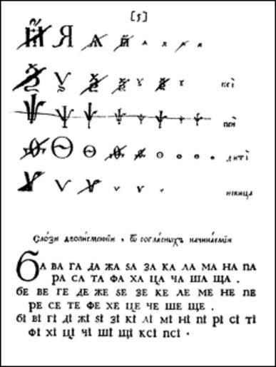 | Keywords: Russian alphabet (marks by Peter I), page 5.gif Г ажданская азбука с исп авлениями Пет а I Civil Russian alphabet with marks by Peter I Page5 Владими Ефимов http //www paratype ru/e-zine/issue04/peter1/peter1c htm Великий пет овский пе елом an article in Russian by Vladimir Efimov A great change by Peter ; illustration no 16 http //www paratype ru/e-zine/issue04/pictures/peter16e gif fifth image In its turn taken from Шицгал А Г Репе туа усского типог афского г ажданского ш ифта XVIII века Ч I Г ажданский ш ифт пе вой четве ти XVIII века 1708 1725 1981 1710 marks by Peter I Russian alphabet marks by Peter I Cyrillic alphabet charts PD-old-100 |