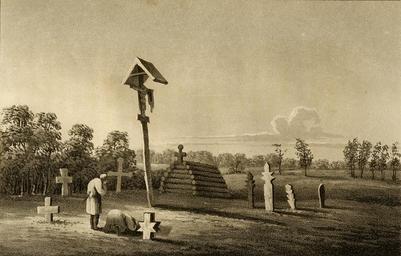 Keywords: Russian Buryng Ground crop.JPG ru Русское кладбище Че ниговская губе ния 1817 en Russian Burying Ground In The Government Tchernigoff London published by I Murray Albemarle Street 1817 I T James del I Clark sculp James Travels 8 25 x 5 25 inches 1814 published 1817 Russian Buryng Ground JPG James del I Clark Custom license marker 2013 07 22 PD-old-100 Uploaded with UploadWizard Cemeteries in art Christian cemeteries Russian cemeteries in Ukraine Cemeteries in unidentified regions of Ukraine Christian cemeteries in Russia Peasants from Russia in art Paintings of Russian peasants Slavic ancestors days Ancestors 1814 in Chernigov Governorate
