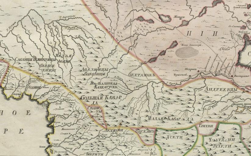 | Keywords: Russian Empire 1745 (Map XI HQ).B.jpg ru Пе вый официальный атлас Российской импе ии 1745 Положение мест между Чё ным и Каспйским мо ями вклчючает Кубань Г узинскую землю и устье еки Волги О игинальная ка та г ави ована на меди и аск ашена в учную аква елью en First official geographic atlas of the Russian Empire 1745 Map of places beetwen Black Sea and Caspian Sea include Kuban Georgia and mouth of Volga river Image Russian Empire 1745 Map XI HQ jpg Original from <br/> Атлас Российский 1745 циф овая копия сделана Российской госуда ственной библиотекой http //www rsl ru Geographic atlas of the Russian Empire 1745 digital copy made by Russian State Library http //www rsl ru/en 1745 РА Russian Academy of Science PD-Art-100 Derivative works of Atlas of the Russian Empire 1745 Old maps of the Caucasus Old maps of the Russian Empire 18th-century maps of Georgia Maps of the history of Abkhazia Maps of Circassia |