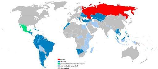 Keywords: Russian visa on arrival.PNG Visa exemption countries for Russian Federation Citizens own 2008-01-26 see below thumb left Emilfarb Original upload log en wikipedia Russian_visa_on_arrival PNG 2011-04-17 13 13 J7sev 1425×625× 33569 bytes <nowiki> Recovered ver 18 01 2011 by Lusfert + Turkey + Albania + Croatia - Bosnia Her </nowiki> 2011-04-15 15 43 Camoka4 1425×625× 33133 bytes <nowiki>cosmetic changes</nowiki> 2011-04-15 15 40 Camoka4 1425×625× 33456 bytes <nowiki>Turkey +visa free</nowiki> 2011-01-18 17 37 Lusfert 1425×625× 33526 bytes <nowiki>+ Chile</nowiki> 2010-12-04 18 48 Lusfert 1425×625× 33540 bytes <nowiki>+ Trinidad Tobago; + Central African Republic VOA ; - Bosnia Her visa/voucher required Corrections Dominican Rep visa free Haiti visa free Laos visa free Sri Lanka VOA </nowiki> 2010-11-07 21 48 Lusfert 1425×625× 33526 bytes <nowiki>- Myanmar visa-on-arrival policy finished ; + Vatican visa-free themself however minor appearance corrections </nowiki> 2010-11-07 19 27 Lusfert 1425×625× 33465 bytes <nowiki>+ Mexico Cyprus added internet registration group ; - Croatia Albania end of season no confirmed visa-free regime in future - group removed ; + San Marino Monaco Andorra visa-free themselves however </nowiki> 2010-10-07 17 02 J7sev 1425×625× 33449 bytes <nowiki>+Honduras</nowiki> 2010-08-25 08 13 Lusfert 1425×625× 33515 bytes <nowiki>+ Guayana visa-free from 01 08 2010 </nowiki> 2010-08-07 19 28 Tetromino 1425×625× 20234 bytes <nowiki>Comoros Haiti Palau Samoa St Vincent Tonga and Tuvalu are visa-on-arrival while Niue and Mariana Islands are visa-free cf references in Visa requirements for Russian citizens Kiribati and Marshall Islands require a visa </nowiki> 2010-06-07 05 10 Lusfert 1425×625× 33185 bytes <nowiki>+ Brazil visa-free </nowiki> 2010-05-06 18 05 J7sev 1425×625× 33227 bytes <nowiki>+Myanmar - visa on arrival</nowiki> 2010-05-06 11 26 Kostya0106 1425×625× 33252 bytes <nowiki>Reverted to version as of 13 06 4 May 2010</nowiki> 2010-05-04 13 01 Kostya0106 1425×644× 63328 bytes <nowiki>+European Union and territories</nowiki> 2010-02-12 09 41 J7sev 1425×625× 33252 bytes <nowiki>-Burundi visa in advance </nowiki> 2010-01-27 17 45 J7sev 1425×625× 33280 bytes <nowiki>-Yemen visa in advance from mid Jan 2010 </nowiki> 2009-10-26 06 40 Baharev 1425×625× 33296 bytes <nowiki>+ Bolivia - visa on arrival</nowiki> 2009-10-03 07 35 J7sev 1425×625× 33282 bytes <nowiki>-Honduras visa in advance </nowiki> 2009-08-05 21 19 J7sev 1425×625× 33272 bytes <nowiki>+Iran visa on arrival -Costa Rica visa in advance </nowiki> 2009-07-23 15 52 Scoelho86 1425×625× 33347 bytes <nowiki>+ Costa Rica</nowiki> 2009-07-07 19 56 J7sev 1425×625× 33324 bytes <nowiki> marginal changes </nowiki> 2009-07-01 07 55 Tetromino 1425×625× 19978 bytes <nowiki>Hong Kong is visa-free for 14 days starting July 1 2009 http //lenta ru/news/2009/07/01/novisas/</nowiki> 2009-06-30 13 38 Passportguy 1425×625× 33311 bytes <nowiki>update map</nowiki> 2009-06-10 16 40 Passportguy 1425×625× 33269 bytes <nowiki>- Iran</nowiki> 2009-04-24 17 11 Kostiq 1425×625× 33196 bytes <nowiki>Added Guatemala and Nicaragua </nowiki> 2009-04-20 06 28 Tetromino 1425×625× 19975 bytes <nowiki>Colombia is visa-free for 90 days starting April 20 2009 http //lenta ru/news/2009/04/20/visa/</nowiki> 2009-03-07 17 36 Tetromino 1425×625× 19980 bytes <nowiki>Venezuela is visa-free for 90 days starting March 6 2009 </nowiki> 2009-01-01 15 44 Kostiq 1425×625× 19923 bytes 2008-09-20 10 37 VAR-loader 1425×625× 33193 bytes 2008-09-04 13 38 Flrn 1425×625× 33191 bytes <nowiki>visa on arrival in Georgia again</nowiki> 2008-08-31 12 11 Kostiq 1425×625× 19894 bytes 2008-08-06 23 29 Buttons 1425×625× 33166 bytes 2008-06-03 15 21 Kostiq 1425×625× 19906 bytes <nowiki>Differentiate between former Soviet Republics and Russia Corrected some small countries from visa-free to VoA </nowiki> 2008-05-26 21 10 Passportguy 1425×625× 33213 bytes <nowiki>differenciate between visa-free VOA correct a few countries</nowiki> 2008-02-13 07 48 Kostiq 1425×625× 32200 bytes <nowiki> previous image from Wikipedia 13 February 2008 </nowiki> 2008-01-26 01 08 Emilfarb 1425×625× 52083 bytes Maps showing visa requirements International relations of Russia Maps of Russia |