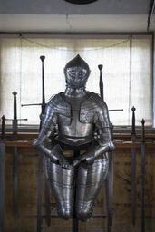 Keywords: Rustning, 1500-talets slut - Skoklosters slott - 100602.tif LSH artwork sv Helrustning ej komplett Alla delar stämplade med Augustburgs pinjekotet och sax Enligt 1930 års katalogkort även med initialerna C S har ej kunnat upptäckas nu 1500-talets slut <br/>Bestående av 19760819 <br/>Bröstharnesk 14855 1<br/>Ryggharnesk 14855 2<br/>Ringkrage 14855 3<br/>ländskört 14855 4<br/>h axelstycke med armskydd 14855 5<br/>h handske 14855 6<br/>v axelstycke med armskydd 14855 7<br/>h lårskena med knäbuckla 14855 8<br/>v lårskena med knäbuckla 14855 9<br/>hjälm 14855 10<br/>v handske 14855 11<br/>14855 1 Bröstharnesk Låg rundad snedräfflad halshanr Dubbla graverade linjer kring hals armar och nedre kant Svagt markerad mittås Två mässingsnitar i nederkanten - för att fösta tassetterna vilka nu saknas Har troligen haft dekor av mässingsnitar utmed nederkanten Spår finnes Fastnitade läderremmar vid axlarna - att spännas vid ryggstycket <br/>H 380 mm bröstvidd 500 mm <br/>14855 2 Ryggharnesk Låg rundad snedräfflad halskant Graverade linjer på motsvarande sätt som bröstharneskets axelstycken I midjans högra sida fastnitad vit sämskad rem - spår av läderrem i vänster sida finnes <br/>H 365 mm ryggvidd 530 mm <br/>14855 3 Ringkrage med halskrage bestående av tre lameller upptill avslutad med snedräfflad kant Mässingsnitar Fodrad med vitt matlareat tyg kantat med röd sammet <br/>14855 4 Ländskört Bestående av fem lameller med mässingsnitar Påhakat vid ryggharnesket på högra sidan spärrat med hake <br/>H 180 mm b 870 mm <br/>Tillbehör Stativ nr 14866<br/>14855 5-7 11 Axelstycken med armskydd och till hörande handskar Axelstycket består av fem lameller - ryggbladen stora De sidor som går in över överarmsskyddet har tandad kant Främre nedre lamellen med mässingsros saknas på 14855 7 Axelskydd med mässingsfodrat spänne i vilket rem från ringkragen spännes Armbucklan med snidad lotusblomma Handske nr 14855 6 är komplett med stelt handledsskydd och hand-och fingerskydd T o m främre knogen bestående av lameller 14855 11 saknar de sex främre lamellerna med knogskydd 14855 11 har röd sammetskantad överkant - saknas på 14855 6 <br/>L armskydd 770 mm diam 470 mm l handske 67 mm fel mått diam 97 fel mått mm<br/>14855 8-9 Lårskenor med knäbucklor Lårskenan i två delar Den övre bestående av 4 lameller - den undre av en hel skena med knäbuckla av 8 lameller nr 14855 8 saknar nedersta delen Skarven mellan de båda delarna ornerade med räffelgraverad rund kant Dekor av graverade linjer och mässingsnitar <br/>L 520 mm b 360 mm <br/>14855 10 Hjälm visir hjälm låg mjuk rundad kant Utan hjälmkrage nertill avslutad med liten kant räffelgraverad Högra sidan med stödstång för visiret Invändigt korsade hjässremmar av sämskat skinn <br/>H 300 mm original caption Rustning 1500-talets slut <br/> Nyckelord 1500-tal Rustningar Rustkammaren Föremålsbild end other date century 16 size mm 1040 SKO C S place of origin original filename sm_dig15696 35687 inventory number SKO 14855 100602 CC-BY-SA Miguel Herranz <gallery caption Different images of same object > File Rustningshandske 1500-talets slut - Skoklosters slott - 100608 tif File Armskydd till rustning 1500-talets slut - Skoklosters slott - 100607 tif File Rustning och nitar 1500-talets slut - Skoklosters slott - 100605 tif File Hjälmvisir 1500-talets slut - Skoklosters slott - 100603 tif File Rustning och nitar 1500-talets slut - Skoklosters slott - 100609 tif File Hjälmvisir 1500-talets slut - Skoklosters slott - 100604 tif File Rustning och nitar 1500-talets slut - Skoklosters slott - 100606 tif </gallery> Armour 16th century Miguel Herranz Media contributed by LSH unmatched keyword Media contributed by LSH 2015-11 Arms and armour in the Skokloster Castle |