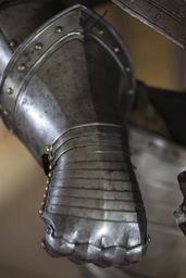 Keywords: Rustningshandske, 1500-talets slut - Skoklosters slott - 100608.tif LSH artwork sv Helrustning ej komplett Alla delar stämplade med Augustburgs pinjekotet och sax Enligt 1930 års katalogkort även med initialerna C S har ej kunnat upptäckas nu 1500-talets slut <br/>Bestående av 19760819 <br/>Bröstharnesk 14855 1<br/>Ryggharnesk 14855 2<br/>Ringkrage 14855 3<br/>ländskört 14855 4<br/>h axelstycke med armskydd 14855 5<br/>h handske 14855 6<br/>v axelstycke med armskydd 14855 7<br/>h lårskena med knäbuckla 14855 8<br/>v lårskena med knäbuckla 14855 9<br/>hjälm 14855 10<br/>v handske 14855 11<br/>14855 1 Bröstharnesk Låg rundad snedräfflad halshanr Dubbla graverade linjer kring hals armar och nedre kant Svagt markerad mittås Två mässingsnitar i nederkanten - för att fösta tassetterna vilka nu saknas Har troligen haft dekor av mässingsnitar utmed nederkanten Spår finnes Fastnitade läderremmar vid axlarna - att spännas vid ryggstycket <br/>H 380 mm bröstvidd 500 mm <br/>14855 2 Ryggharnesk Låg rundad snedräfflad halskant Graverade linjer på motsvarande sätt som bröstharneskets axelstycken I midjans högra sida fastnitad vit sämskad rem - spår av läderrem i vänster sida finnes <br/>H 365 mm ryggvidd 530 mm <br/>14855 3 Ringkrage med halskrage bestående av tre lameller upptill avslutad med snedräfflad kant Mässingsnitar Fodrad med vitt matlareat tyg kantat med röd sammet <br/>14855 4 Ländskört Bestående av fem lameller med mässingsnitar Påhakat vid ryggharnesket på högra sidan spärrat med hake <br/>H 180 mm b 870 mm <br/>Tillbehör Stativ nr 14866<br/>14855 5-7 11 Axelstycken med armskydd och till hörande handskar Axelstycket består av fem lameller - ryggbladen stora De sidor som går in över överarmsskyddet har tandad kant Främre nedre lamellen med mässingsros saknas på 14855 7 Axelskydd med mässingsfodrat spänne i vilket rem från ringkragen spännes Armbucklan med snidad lotusblomma Handske nr 14855 6 är komplett med stelt handledsskydd och hand-och fingerskydd T o m främre knogen bestående av lameller 14855 11 saknar de sex främre lamellerna med knogskydd 14855 11 har röd sammetskantad överkant - saknas på 14855 6 <br/>L armskydd 770 mm diam 470 mm l handske 67 mm fel mått diam 97 fel mått mm<br/>14855 8-9 Lårskenor med knäbucklor Lårskenan i två delar Den övre bestående av 4 lameller - den undre av en hel skena med knäbuckla av 8 lameller nr 14855 8 saknar nedersta delen Skarven mellan de båda delarna ornerade med räffelgraverad rund kant Dekor av graverade linjer och mässingsnitar <br/>L 520 mm b 360 mm <br/>14855 10 Hjälm visir hjälm låg mjuk rundad kant Utan hjälmkrage nertill avslutad med liten kant räffelgraverad Högra sidan med stödstång för visiret Invändigt korsade hjässremmar av sämskat skinn <br/>H 300 mm original caption Rustningshandske 1500-talets slut <br/> Nyckelord Rustningshandske Rustning Föremålsbild end other date century 16 size mm 1040 SKO C S place of origin original filename sm_dig15702 35687 inventory number SKO 14855 100608 CC-BY-SA Miguel Herranz <gallery caption Different images of same object > File Rustning 1500-talets slut - Skoklosters slott - 100602 tif File Armskydd till rustning 1500-talets slut - Skoklosters slott - 100607 tif File Rustning och nitar 1500-talets slut - Skoklosters slott - 100605 tif File Hjälmvisir 1500-talets slut - Skoklosters slott - 100603 tif File Rustning och nitar 1500-talets slut - Skoklosters slott - 100609 tif File Hjälmvisir 1500-talets slut - Skoklosters slott - 100604 tif File Rustning och nitar 1500-talets slut - Skoklosters slott - 100606 tif </gallery> Armour Miguel Herranz Media contributed by LSH unmatched keyword Media contributed by LSH 2015-11 Arms and armour in the Skokloster Castle |