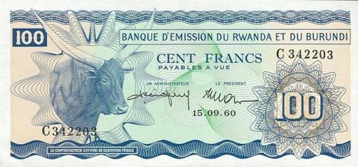 Keywords: RwandaBurundiP5-100Francs-600915-donatedth f.jpg en 100 francs es 100 francos Ron Wise's World Paper Money http //aes iupui edu/rwise Banque d'emission de Rwanda et Burundi 1960 PD-Old GFDL cc-by-sa-all Banknotes of Burundi Banknotes of Rwanda Animals on banknotes Banknotes with a face value of 100 1960 banknotes |