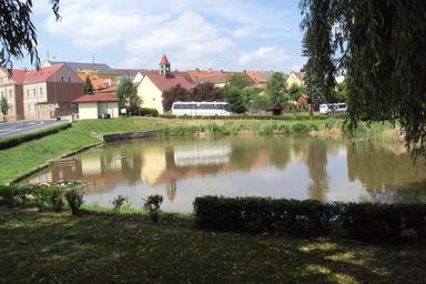 Keywords: Rybník Dubá.jpg cs Rybníček u autobusového nádraží own Zákupák 2011-06-06 50 32 28 105 N 14 32 28 078 E region CZ Českolipská Dubá Pond in the centre of Dubá Dubá bus station Evangelical church Dubá