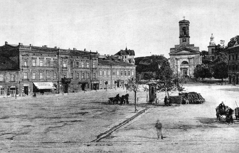 Keywords: Rynek Podgorski.jpg pl icon Rynek Podgórze k Krakowa koniec 19 wieku en icon Market Square in Podgórze near Krakow Cracow Poland end of 19th century own scan end of 19th century original author PD-old History of Kraków Saint Joseph church in Kraków-Podgórze Podgórze Market Square in Kraków |