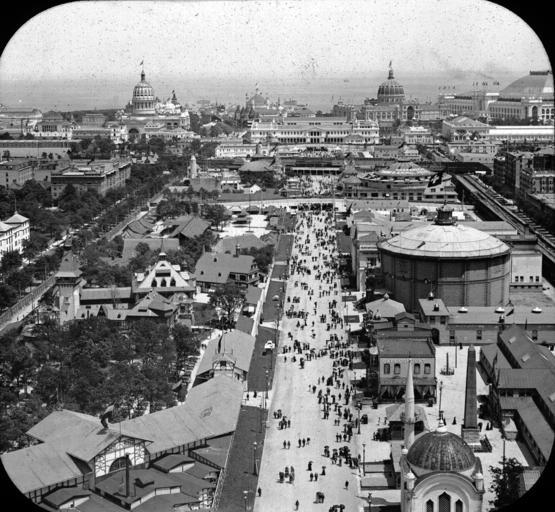 | Keywords: S03 06 01 016 image 2191.jpg Photograph en World's Columbian Exposition Ferris Wheel Chicago United States 1893 Bird's eye view from Ferris Wheel looking east; 'WF' Brooklyn Museum Archives Goodyear Archival Collection S03_06_01_016 image 2191 depicted people depicted place before 1923 Institution Brooklyn Museum object history exhibition history credit line Midway Plaisance bordered by 59th Street left and 60th Street 'Barre Sliding Railway' tracks built just for the fair looking eastwards towards Lake Michigan visible in the distance In the foreground on the left German Village and Javanese Village section of the Dutch Settlement ; in the foreground on the right Turkish Village with fountain and replica of the Obelisk of Theodosius Café Concert Indoor Panorama building of the Bernese Alps Switzerland with Swiss flag on top Natatorium and south part of the Dutch settlement After the viaduct on the left Japanese Bazar Irish Village Libby Glass Company and the 'Electric scenic theater'; after the viaduct on the right Hagenbeck's Arena for animal exhibit shows behind - not visible in the photo - Venice Murano glass company and the Sliding railway station The black line is the bridge of the Illinois Central Railroad facing the main entrance gate to the exposition the International Dress and Costume Company Building left and the Village of the Irish Industries Association right The large white exhibition halll is the Woman's Building the domes belong to the Illinois State Building left and the US Government Building right all located at the north end of the lagoon http //columbus iit edu/dreamcity/midway html Midway Plaisance plan by columbus iit edu http //www bc edu/bc_org/avp/cas/fnart/fa267/1893/midway_plan jpg Midway Plaisance Plan by bc edu accession number Brooklyn Museum Brooklyn_Museum-no_known_restrictions PD-old-auto 1923 Midway Plaisance at the World's Columbian Exposition 01 eastwards Photographs from the Goodyear Archival Collection 59th Street Chicago 1893 60th Street Chicago |