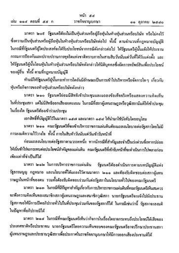Keywords: S209-1997Con-01.jpg en Page 54 of the Government Gazette Volume 114/Part 55 A/Dated October 11 1997 on which sections 209-214 of the Constitution of the Kingdom of Thailand BE 2540 1997 were published Section 209 prohibited holders of political positions from conflict of interest This is a page of Thai legislation which is not a copyright-work under Thailand's Copyright Act BE 2537 1994 th หน้า ๕๔ ของราชกิจจานุ บกษา ล่ม ๑๑๔/ตอนที่ ๕๕ ก/ลงวันที่ ๑๑ ตุลาคม ๒๕๔๐ ซึ่งประกาศ มาตรา ๒๐๙-๒๑๔ ของรัฐธรรมนูญแห่งราชอาณาจักรไทย พุทธศักราช ๒๕๔๐ หน้านี้ ป็นส่วนหนึ่งของกฎหมายไทย ซึ่งไม่ ป็นงานอันมีลิขสิทธิ์ตามพระราชบัญญัติลิขสิทธิ์ พ ศ ๒๕๓๗ own Clumsy 2010-04-19 PD-TH-exempt 100px 100px Thaksin Shinawatra's assets confiscation case |