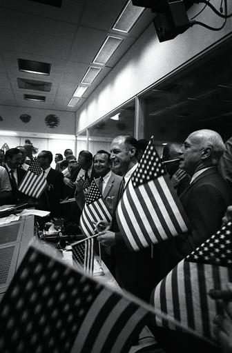 | Keywords: blackandwhite indoor black and white S69-40024 (24 July 1969) --- NASA and Manned Spacecraft Center (MSC) officials join in with the flight controllers, in the Mission Operations Control Room (MOCR) in the Mission Control Center (MCC), in celebrating the successful conclusion of the Apollo 11 lunar landing mission. Identifiable in the picture, starting in foreground, are Dr. Robert R. Gilruth, MSC Director; George M. Low, Manager, Apollo Spacecraft Program, MSC; Dr. Christopher C. Kraft Jr., MSC Director of Flight Operation; U.S. Air Force Lt. Gen. Samuel C. Phillips (with glasses, looking downward), Apollo Program Director, Office of Manned Space Flight, NASA Headquarters; and Dr. George E. Mueller (with glasses, looking toward left), Associate Administrator, Office of Manned Space Flight, NASA Headquarters. Former astronaut John H. Glenn Jr. is standing behind Mr. Low. NASA Photograph Collection. (2016/04/21). S69-40024 (24 July 1969) --- NASA and Manned Spacecraft Center (MSC) officials join in with the flight controllers, in the Mission Operations Control Room (MOCR) in the Mission Control Center (MCC), in celebrating the successful conclusion of the Apollo 11 lunar landing mission. Identifiable in the picture, starting in foreground, are Dr. Robert R. Gilruth, MSC Director; George M. Low, Manager, Apollo Spacecraft Program, MSC; Dr. Christopher C. Kraft Jr., MSC Director of Flight Operation; U.S. Air Force Lt. Gen. Samuel C. Phillips (with glasses, looking downward), Apollo Program Director, Office of Manned Space Flight, NASA Headquarters; and Dr. George E. Mueller (with glasses, looking toward left), Associate Administrator, Office of Manned Space Flight, NASA Headquarters. Former astronaut John H. Glenn Jr. is standing behind Mr. Low. NASA Photograph Collection. (2016/04/21). |
