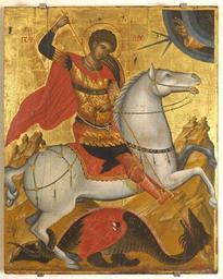Keywords: S.George (Candia, late 15th c.).jpg Ο Άγιος Γεώργιος έφι ος δρακοντοκτόνος τέλη 15ου αιώνα 65 5x82 5εκ άγνωστος ζωγράφος του Χάνδακα Στην εικόνα αυτή αριστάνεται ο άγιος Γεώργιος με στρατιωτική εξάρτυση και έφι ος τη στιγμή ου σκοτώνει τον φτερωτό δράκοντα με το δόρυ του Α ό το τεταρτοκύκλιο του ουρανού ροβάλλει το χέρι του Θεού ου τον ευλογεί Πρόκειται για το ιο δημοφιλές θαύμα του αγίου το ο οίο στο βίο του συσχετίζεται με την α ελευθέρωση της όλης της Λασίας α ό τον δράκοντα και τη διάσωση της μικρής ριγκί ισσας http //eib xanthi ilsp gr/gr/icons asp cursort iconTitle selectFieldValue vpage 3 late 15th century unknown painter of Candia Icons of Saint George and the Dragon 1490 Files uploaded by Shakko from various sources Icons of Candia 15th-century icons of Byzantine Empire Paintings of coats of arms PD-old |