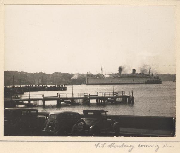 Keywords: sydney harbour rahs royal australian historical society royalaustralianhistoricalsociety monterey ship outdoor photo border monochrome 'S.S. Monterey Coming In' - RAHS/Osborne Collection c. 1930s Explore Royal Australian Historical Society's 1397 photos on Flickr! |