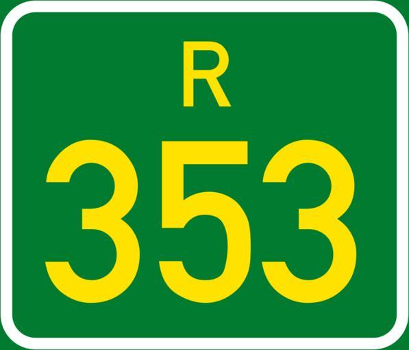 Keywords: SA road R353.svg en South Africa R353 road sign own Htonl 2014-09-03 353 number Diagrams of regional road number signs of South Africa
