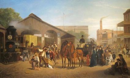 Keywords: 'Sacramento Railroad Station' by William Hahn.JPG Railroad station of Sacramento California title Sacramento Railroad Station oil on canvas De Young Museum own Wmpearl creator William Hahn 1874 Paintings of California William Hahn History of Sacramento 1874 American paintings in the De Young Museum 1874 oil on canvas paintings in the United States 1874 in California Former train stations in California Sacramento Cities of the United States in art Cc-zero |