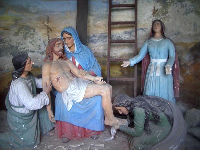 Keywords: Sacro Monte Belmonte Deposizione.JPG Santuario di Belmonte Turin Italy The Descent from the Cross clay statues XVIII century 2007-03-03 own assumed Laurom Sacro Monte Belmonte 18th-century statues in Italy Terracottas in Italy Belmonte Sculptures of the descent from the cross |