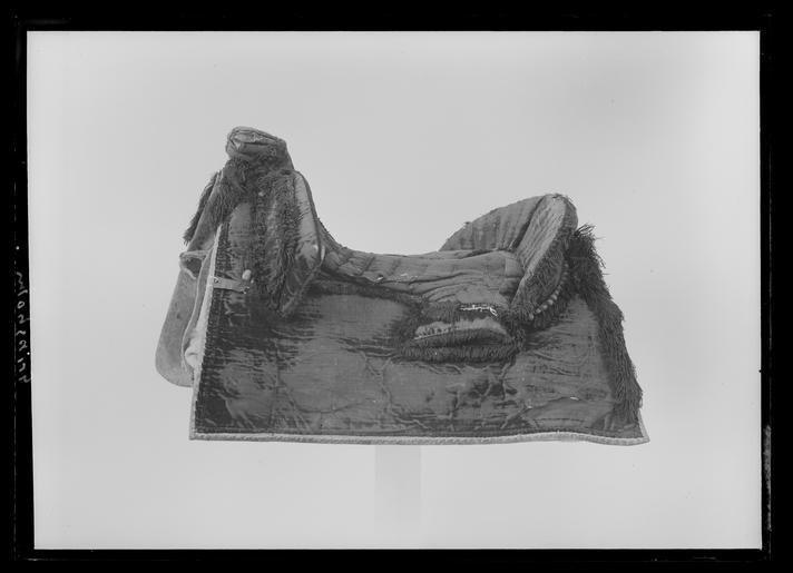 Keywords: Sadel, bomsadel, 1600-talets mitt - Livrustkammaren - 43507.tif Bomsadel av röd sammet med pressad dekor till större delen täckt av silverspets med silverlan Sits av mönsterpressad röd sammet med stickningar av tvinnad silvertråd Rektangulära sadelkappor fodrade med läder <br/>Delad frambom 510 mm bred 80 mm hög klädd med mönsterpressad röd sammet på insidan och silverspets på utsidan Bakbom 560 mm bred 70 mm hög klädd med mönsterpressad röd sammet med stickningar av tvinnad silvertråd utsidan klädd med silverspets breda stödbommar överklädda med silverspets på röd sammet <br/><br/>Vid frambommen förgyllda och försilvrade tännlikor av silver och mässing likadana tännlikor bakom bakbommen Päronformad sadelknapp med försilvrad tännlika och stickningar av silvertråd <br/><br/>Bom klädd med ljust läder Bossor av linne kantade med vitt skinn fyra stroppar av läder för sadelgjord På frambommen två söljor för förbygel och läderögla klädd med röd sammet original caption mid other date century 17 velvet Färg röd material sammet - silver thread - leather - silver - brass - linen - hide Färg vit material skinn size mm 630 size mm 310 sits LRK Axel Oxenstierna af Södermöre place of origin original filename LN_B04165_007045 41723 inventory number LRK 7652 43507 CC0 Sadel bomsadel 1600-talets mitt - Livrustkammaren - 43507-negative tif Saddles Media contributed by LSH unmatched material Media contributed by LSH dim-with multiple size templates Horse tack images from Livrustkammaren Media contributed by LSH 2013-10 |