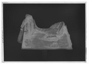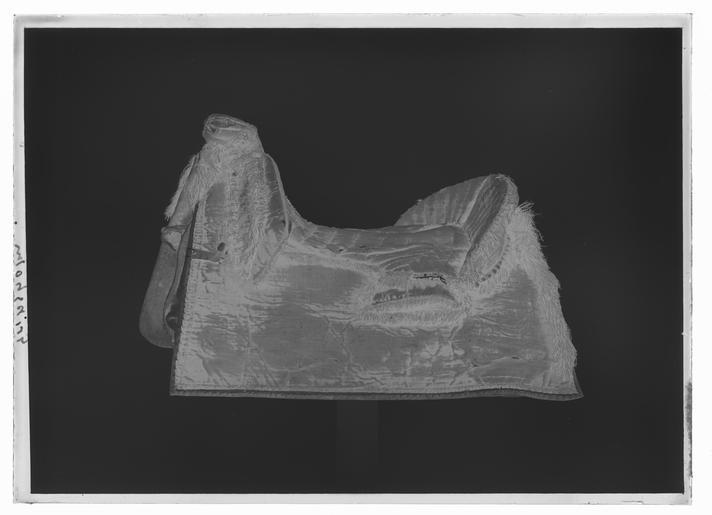 Keywords: Sadel, bomsadel, 1600-talets mitt - Livrustkammaren - 43507-negative.tif Bomsadel av röd sammet med pressad dekor till större delen täckt av silverspets med silverlan Sits av mönsterpressad röd sammet med stickningar av tvinnad silvertråd Rektangulära sadelkappor fodrade med läder <br/>Delad frambom 510 mm bred 80 mm hög klädd med mönsterpressad röd sammet på insidan och silverspets på utsidan Bakbom 560 mm bred 70 mm hög klädd med mönsterpressad röd sammet med stickningar av tvinnad silvertråd utsidan klädd med silverspets breda stödbommar överklädda med silverspets på röd sammet <br/><br/>Vid frambommen förgyllda och försilvrade tännlikor av silver och mässing likadana tännlikor bakom bakbommen Päronformad sadelknapp med försilvrad tännlika och stickningar av silvertråd <br/><br/>Bom klädd med ljust läder Bossor av linne kantade med vitt skinn fyra stroppar av läder för sadelgjord På frambommen två söljor för förbygel och läderögla klädd med röd sammet original caption mid other date century 17 velvet Färg röd material sammet - silver thread - leather - silver - brass - linen - hide Färg vit material skinn size mm 630 size mm 310 sits LRK Axel Oxenstierna af Södermöre place of origin original filename LN_B04165_007045 41723 inventory number LRK 7652 43507 CC0 Sadel bomsadel 1600-talets mitt - Livrustkammaren - 43507 tif |
