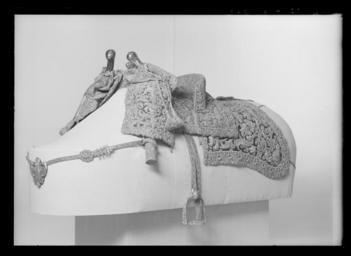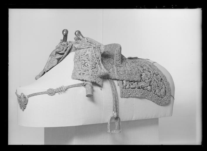 Keywords: Sadel, bomsadel - Le Plaie - Livrustkammaren - 61459.tif Ingående i franska gåvan till Karl XI 1673 Frankrike 1600-talets mitt För hästen nr 2 Le Plaie Bomsadel av blå sammet med rektangulära kappor med reliefbroderi i form av rankor blommor och stiliserade franska liljor Broderi med guld- och silvertråd Utmed kanterna en ca 40 mm bred bård med yttäckande broderi Frambom ca 520 mm bred och 90 mm hög Bakbom med små stödbommar ca 52 mm bred och 90 mm hög Sitsen och bommarnas insidor av blå sammet med rankformiga stickningar av guldtråd Sitsen och bommarnas utsidor kantade med guldtrådsfrans Sadelknapp av förgyllt silver i form av lejonhuvud Framför frambommen 14 + 9 runda blomformiga tännlikor av förgylld mässing Bakom bakbommen 12 + 14 tännlikor av samma material Bom överklädd med tunt läder Bossor av tunt ljusbrunt läder och naturfärgat linne kantning av ljusblått linneband På var sida två stroppar för sadelgjord samt krampa för stigläder Baktill två öglor av vitt läder samt ögla av läder för svansrem Framtill två söljor av stål för förbygel Framför frambommen två krampor av förgylld mässing för pistolhölster original caption Karl XI s myndighetsförklaring 1673 velvet Färg blå S - SADLAR OCH HÄSTUTRUSTNING material sammet - gold thread S - SADLAR OCH HÄSTUTRUSTNING material guldtråd - silver thread S - SADLAR OCH HÄSTUTRUSTNING material silvertråd - silver S - SADLAR OCH HÄSTUTRUSTNING material silver - brass S - SADLAR OCH HÄSTUTRUSTNING material mässing - leather S - SADLAR OCH HÄSTUTRUSTNING material läder - linen S - SADLAR OCH HÄSTUTRUSTNING material linne size mm 570 size mm 290 sits g 7600 LRK Karl XI av Sverige Basutställning Spelet om Skåne 1993 Modelejon 2002 place of origin original filename LN_B12477_015357 54115 inventory number LRK 17520 61459 CC0 Sadel bomsadel - Le Plaie - Livrustkammaren - 61459-negative tif <gallery caption Different images of same object > File Bomsadel - Livrustkammaren - 59848 tif File Sadel bomsadel - Le Plaie - Livrustkammaren - 78580 tif File Bomsadel - Livrustkammaren - 42727 tif File Sadel bomsadel - Le Plaie - Livrustkammaren - 70021 tif File Sadel bomsadel - Le Plaie - Livrustkammaren - 17842 tif File Sadel bomsadel - Le Plaie - Livrustkammaren - 1535 tif File Sadel bomsadel - Le Plaie - Livrustkammaren - 10095 tif File Sadel bomsadel - Le Plaie - Livrustkammaren - 35784 tif File Sadel bomsadel - Le Plaie - Livrustkammaren - 1537 tif File Sadel bomsadel - Le Plaie - Livrustkammaren - 77765 tif </gallery> Horse equipment Saddles Media contributed by LSH unmatched event Media contributed by LSH dim-with multiple size templates Horse tack images from Livrustkammaren Media contributed by LSH 2013-10 |