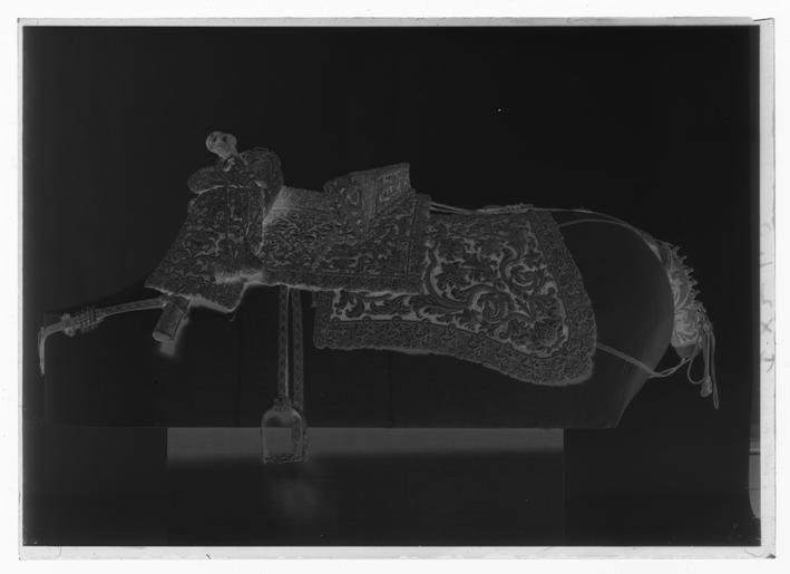 Keywords: Sadel, bomsadel - Le Plaie - Livrustkammaren - 10095-negative.tif Ingående i franska gåvan till Karl XI 1673 Frankrike 1600-talets mitt För hästen nr 2 Le Plaie Bomsadel av blå sammet med rektangulära kappor med reliefbroderi i form av rankor blommor och stiliserade franska liljor Broderi med guld- och silvertråd Utmed kanterna en ca 40 mm bred bård med yttäckande broderi Frambom ca 520 mm bred och 90 mm hög Bakbom med små stödbommar ca 52 mm bred och 90 mm hög Sitsen och bommarnas insidor av blå sammet med rankformiga stickningar av guldtråd Sitsen och bommarnas utsidor kantade med guldtrådsfrans Sadelknapp av förgyllt silver i form av lejonhuvud Framför frambommen 14 + 9 runda blomformiga tännlikor av förgylld mässing Bakom bakbommen 12 + 14 tännlikor av samma material Bom överklädd med tunt läder Bossor av tunt ljusbrunt läder och naturfärgat linne kantning av ljusblått linneband På var sida två stroppar för sadelgjord samt krampa för stigläder Baktill två öglor av vitt läder samt ögla av läder för svansrem Framtill två söljor av stål för förbygel Framför frambommen två krampor av förgylld mässing för pistolhölster original caption Karl XI s myndighetsförklaring 1673 velvet Färg blå S - SADLAR OCH HÄSTUTRUSTNING material sammet - gold thread S - SADLAR OCH HÄSTUTRUSTNING material guldtråd - silver thread S - SADLAR OCH HÄSTUTRUSTNING material silvertråd - silver S - SADLAR OCH HÄSTUTRUSTNING material silver - brass S - SADLAR OCH HÄSTUTRUSTNING material mässing - leather S - SADLAR OCH HÄSTUTRUSTNING material läder - linen S - SADLAR OCH HÄSTUTRUSTNING material linne size mm 570 size mm 290 sits g 7600 LRK Karl XI av Sverige Basutställning Spelet om Skåne 1993 Modelejon 2002 place of origin original filename LN_B12481_015361 54115 inventory number LRK 17520 10095 CC0 Sadel bomsadel - Le Plaie - Livrustkammaren - 10095 tif <gallery caption Different images of same object > File Bomsadel - Livrustkammaren - 59848 tif File Sadel bomsadel - Le Plaie - Livrustkammaren - 78580 tif File Bomsadel - Livrustkammaren - 42727 tif File Sadel bomsadel - Le Plaie - Livrustkammaren - 70021 tif File Sadel bomsadel - Le Plaie - Livrustkammaren - 17842 tif File Sadel bomsadel - Le Plaie - Livrustkammaren - 1535 tif File Sadel bomsadel - Le Plaie - Livrustkammaren - 61459 tif File Sadel bomsadel - Le Plaie - Livrustkammaren - 35784 tif File Sadel bomsadel - Le Plaie - Livrustkammaren - 1537 tif File Sadel bomsadel - Le Plaie - Livrustkammaren - 77765 tif </gallery> |