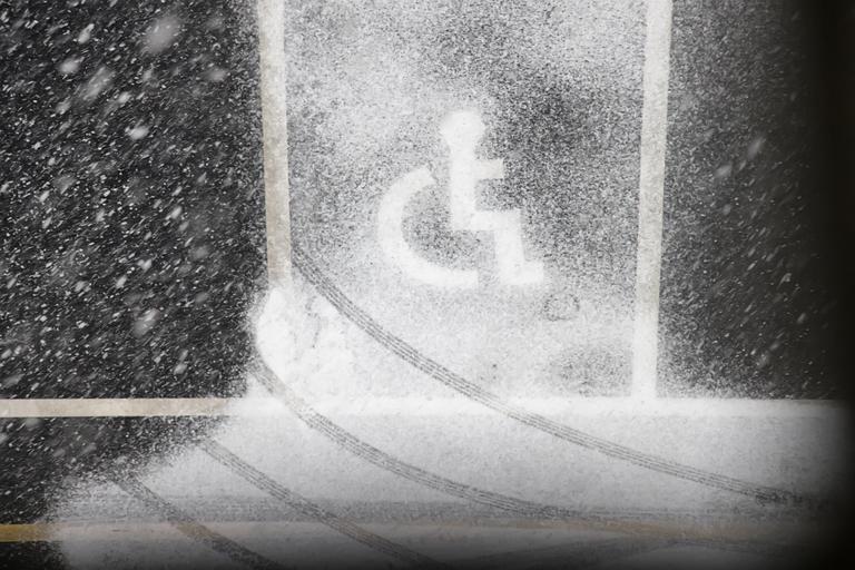Keywords: safety mark persons with disabilities parking winter snow white snow veranda in the cold life pain line background stain snow flower limit care wheelchair hospital merit hope
