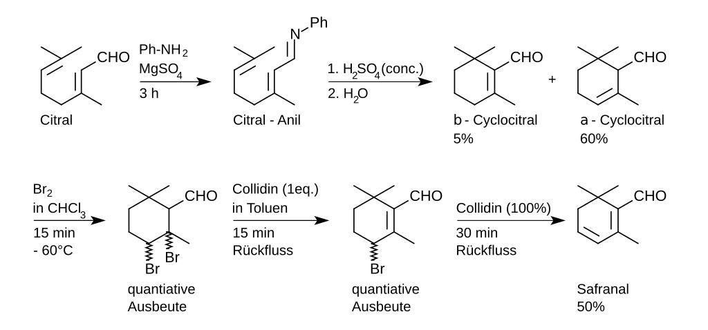| Keywords: Safranal synthesis.svg Synthesis of Safranal starting from Citral <br> according to W M B Könst L M van der Linde and H Boelens Tetrahedron Letters 15 36 1974 pp 3175-3178 Own 2009-06-28 Joël Gubler alias Talos public domain Organic syntheses |