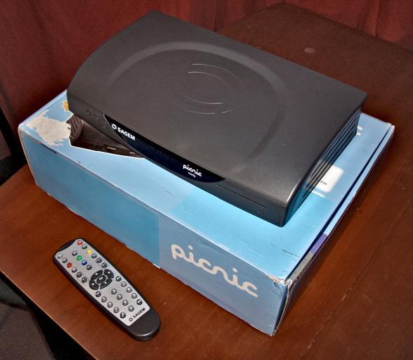 | Keywords: Sagem Picnic STB.jpg en Sagem ITD81-SD Picnic ready STB and remote The blue labels on the packaging are covering information regarding the never launched Picnic pay-TV service own Karsini British Sky Broadcasting Digital television Sagem Set-top boxes |