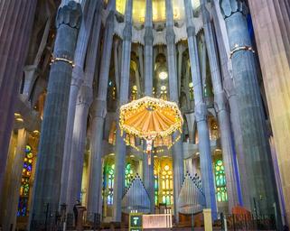 Keywords: sagrada familia cathedral barcelona architecture church jesus christ famous religion catholicism landmark spain gothic construction europe christianity interior stained glass christain symbol