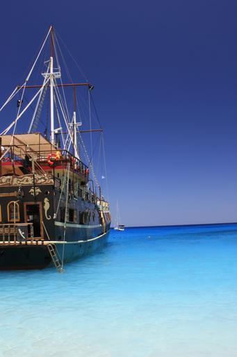 Keywords: sailboat pirates blue sky blue sea vacation sea cruise