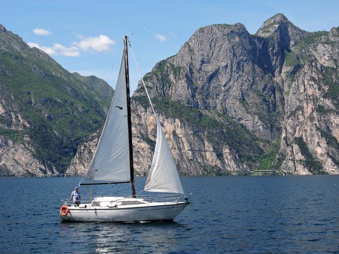 Keywords: sailing boat lake mountain water garda italy landscape sky