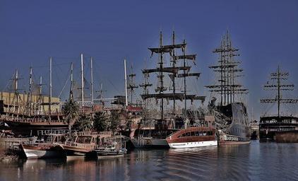 Keywords: sailing ship vessel boat sea sailboat ocean transport horizon pirate pirate ship disney sail wave