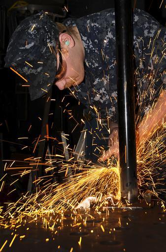 | Keywords: Sailor performs grinding 130207-N-KE148-102.jpg en Hull Maintenance Technician Fireman Jordan Hoglund from Tacoma Wash grinds the base of a stand that will be used for a fan on board the aircraft carrier USS Nimitz CVN 68 Grinding welding bending and fitting for metals is done in Nimitz's machine repair shop U S Navy Photo by Mass Communication Specialist 3rd Class Chris Bartlett/Released 2013-02-07 Seaman Chris Bartlett https //www dvidshub net/image/829436 130207-N-KE148-102 2013-02-07 18 12 USS NIMITZ CVN 68 /NAVAL STATIO WA US PD-USGov-Military-Navy USS Nimitz CVN-68 Images from DoD uploaded by Fæ |