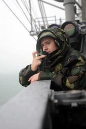 Keywords: Sailor watches carrier pull into port DVIDS183974.jpg en Seaman Mary Lemme from Bakersfield Calif stands watch in the rain on a weather deck aboard the aircraft carrier USS Ronald Reagan as the ship pulls into Singapore Operations specialists are responsible for operating radar navigation communications equipment and detecting and tracking ships planes and missiles Ronald Reagan is moored pier-side in Singapore for a scheduled port visit 2009-06-24 Petty Officer 3rd Class Chelsea Kennedy https //www dvidshub net/image/183974 090624-N-+++++-239 2009-06-30 10 02 SINGAPORE SG PD-USGov-Military-Navy USS Ronald Reagan CVN-76 Images from DoD uploaded by Fæ |