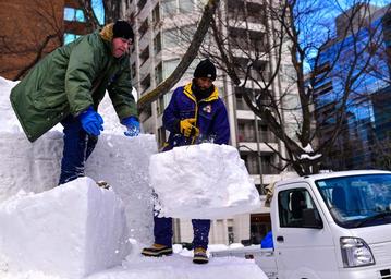 Keywords: Sailors participate in 67th Annual Snow Festival 160131-N-OK605-042.jpg en 160131-N-OK605-042 SAPPORO Japan Jan 31 2016 Members of the U S Navy ™s 2016 Sapporo Snow Team Builder 1st Class Thomas Thornton from Huntington Mass left and Operations Specialist 2nd Class Ellington Morgan from Sacramento Calif remove a block of snow while shaping a 10 feet by 10 feet three-dimensional surface warfare pin snow sculpture in preparation for the 67th Annual Sapporo Snow Festival The pin is being carved in honor of the prestigious warfare program and the stellar Sailors who have attained the qualification This is the 33rd consecutive year that the U S Navy has sent a team of Sailors to participate in the festival U S Navy Photo by Mass Communication Specialist 3rd Class Samuel Weldin/Released Unit Naval Air Facility Misawa DVIDS Tags chainsaw; Sapporo Snow Festival; Naval Air Facility Misawa; snow sculpture; Surface Warfare Pin 2016-01-31 Petty Officer 3rd Class Samuel Weldin https //www dvidshub net/image/2379436/sailors-participate-67th-annual-snow-festival 160131-N-OK605-042 2016-02-02 00 29 SAPPORO HOKKAIDO JP PD-USGov-Military-Navy Naval Air Facility Misawa Chainsaws Images from DoD uploaded by Fæ |