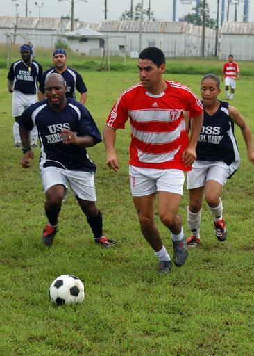 | Keywords: Sailors participate in a multi-national soccer game DVIDS55297.jpg en Sailors of USS Pearl Harbor LSD 52 participate in a multi-national soccer tournament game Aug 29 against the Peruvian Navy's team in Balboa Panama during Partnership of the Americas 2007 POA is a Naval Southern Command deployment which focuses on strengthening bonds and fostering new relations with partner nations through various exercises at sea and on shore throughout Latin America and the Caribbean 2007-08-29 Petty Officer 2nd Class Damien Horvath https //www dvidshub net/image/55297 070829-N-+++++-020 2007-09-05 09 19 BALBOA PA PD-USGov-Military-Navy USS Pearl Harbor LSD-52 Images from DoD uploaded by Fæ |