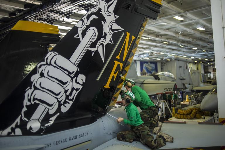 Keywords: Sailors remove panels from Hornet aboard USS George Washington. (10193452885).jpg WATERS TO THE EAST OF THE KOREAN PENINSULA Oct 9 2013 Aviation Structural Mechanic 3rd Class Chantel Boudeau left from Perchtolsdorf Austria and Aviation Structural Mechanic Airman Ryan Eilenfeld from Galion Ohio remove panels from an F/A-18E Super Hornet from the Royal Maces of Strike Fighter Squadron VFA 27 in the hangar bay of the aircraft carrier USS George Washington CVN 73 George Washington and its embarked air wing Carrier Air Wing CVW 5 provide a combat-ready force that protects and defends the collective maritime interest of the U S and its allies and partners in the Indo-Asia-Pacific region U S Navy photo by Mass Communication Specialist 3rd Class Ricardo R Guzman/Released 131009-N-BX824-038 Join the conversation http //www facebook com/USNavy www facebook com/USNavy http //www twitter com/USNavy www twitter com/USNavy http //navylive dodlive mil navylive dodlive mil http //www flickr com/photos/usnavy/10193452885/ Sailors remove panels from Hornet aboard USS George Washington 2013-10-09 10 33 http //www flickr com/people/56594044 N06 Official U S Navy Page from United States of America MC3 Ricardo R Guzman/U S Navy U S Navy photo PD-USGov-Military-Navy Official U S Navy Imagery http //flickr com/photos/56594044 N06/10193452885 2014-04-03 13 02 52 cc-by-2 0 USS George Washington CVN-73 hangar deck Images from US Navy location Korean Straits Sailors from the United States Navy Files uploaded by Russavia Files uploaded by Russavia Strike Fighter Squadron 27 United States Navy |
