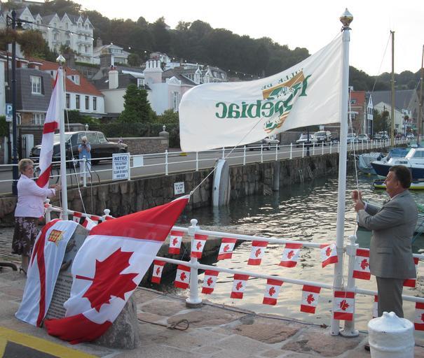Keywords: Saint Aubîn Paspédgia Jèrri Gaspé Septembre 2009 a.jpg Dêvouailement d'eune pièrre à la caûchie d'Saint Aubîn Saint Brélade Jèrri pouor ramémouaither les lians entre Jèrri et la Côte fondés sus la pêque et l'conmèrce d'la compangnie Robîn La pièrre stchulptée auve eune carte du Gaspé fut dêvouailée par l'Gouvèrneux et Madanme Ridgway; lé Sieur Michael Birt Bailli d'Jèrri fit un discours et l'Recteu d'Saint Brélade prêchit la bénédiction; lé Sieur Ralph Maûgi fut l'organnîsateu d'l'êchangedes monuments entre Jèrri et Paspédgia 18 September 2009 unveiling of monument in Saint Aubin commemorating the historic links between Jersey and the Gaspé A corresponding monument has also been inaugurated in Paspébiac Inauguration d'un monument rappelant l'histoire des pêcheries jersiaises en Gaspésie fondées par le marchand jersiais Charles Robin de Saint-Aubîn own own photo 2009-09-18 Man vyi Own work all rights released Public domain Saint Aubin harbour Memorial stones in Jersey September 2009 Paspébiac Sir Andrew Peter Ridgway Photographs of flags of Jersey Photographs of the national flag of Canada People with flags 2009 in Jersey Flags of cities and regions in Quebec National flag of Canada with other flags Flags in Jersey Coasts of Quebec |