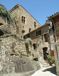 | Keywords: Saint-Floret8.JPG fr Saint-Floret comm du Puy-de-Dôme Auvergne France Vue prise à proximité de l'église ; marches menant au château Le bâtiment en haut dit château inférieur est l'une des deux parties dont se composait l'ancienne forteresse ; ce corps de logis de plan carré est constitué de trois salles superposées dont celle située au premier étage auquel donne jour notamment la fenêtre quadrilobée visible sur la photo est voûtée d'ogives et présente des vestiges de peintures murales du XIVe siècle self-photographed Torsade de Pointes 2011-07 Saint-Floret Cc-zero |