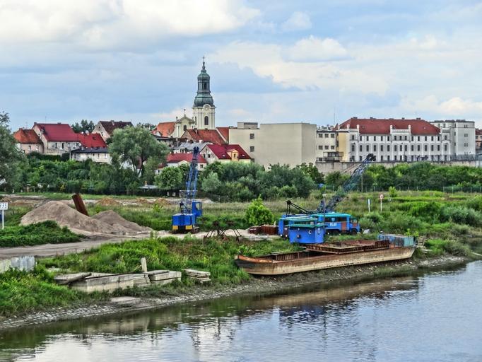 Keywords: saint nicholas church bydgoszcz riverside excavator construction site water city