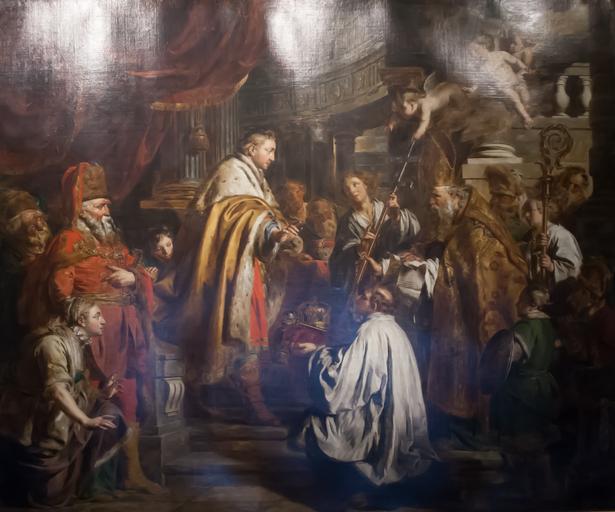 Keywords: Saint Stephen receives the Pope's envoys.jpg Artwork Creator Pieter Jozef Verhaghen 1770 Oil on canvas Size cm 342 284 LangSwitch Owner Tulajdonos Institution Budapest Museum of Fine Arts LangSwitch Exhibited Kiállítva Institution Hungarian National Gallery Mikó Árpád Sinkó Katalin szerk Történelem-Kép Szemelvények múlt és művészet kapcsolatáról Magyarországon A Magyar Nemzeti Galéria kiadványai 2000/3 cat no V-43 object history credit line bottom right P J Verhaghen Aerschotonus F 1770 accession number 6782 photo by Szilas in the Hungarian National Gallery <gallery> Verhaghen Saint Stephen receives the Pope's envoys 1700 jpg </gallery> PD-old-100 Pieter Jozef Verhaghen History paintings in the Hungarian National Gallery Southern Netherlandish paintings in the Museum of Fine Arts Budapest 1770 oil on canvas paintings 1770 paintings in Hungary 18th-century history paintings Hungary in history paintings Paintings of Stephen I of Hungary Holy Crown of Hungary in art 18th-century oil on canvas paintings in Hungary |