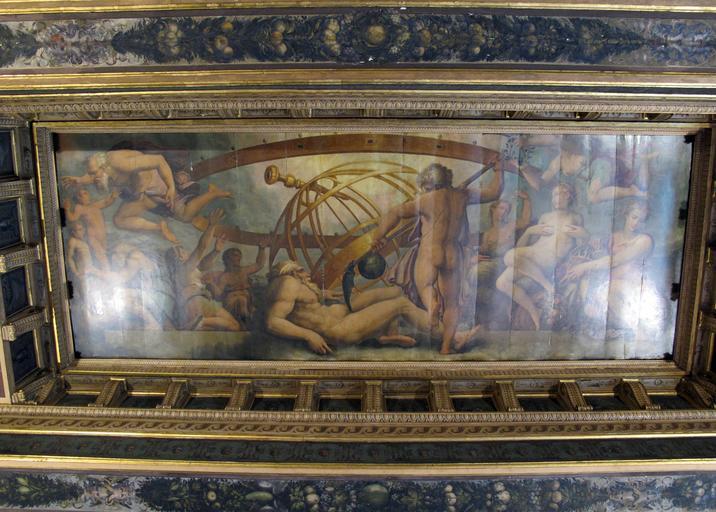 Keywords: Sala degli elementi, crono, tra allegorie, mutila urano per originare i 4 elementi, di vasari, c. gherardi e m. da faenza 01.JPG Artwork Q5489695 Creator Giorgio Vasari Cronus Saturn castrates his father Uranus the Greek sky god before Zeus Cronus Saturno castra a su padre Uranus el dios griego del cielo antes de Zeus Cronos le Saturne des latins castre son père Ouranos le dieu grec du ciel avant Zeus Crono Saturno castra suo padre Urano il dio greco del cielo prima di Zeus Castració d'Urà fresc de Giorgio Vasari Entire painting century 16 Oil on panel Palazzo Vecchio Florence Ceiling of the room of the Elements object history exhibition history credit line accession number own Artwork PD-old-100 Photograph cc-by-3 0 <gallery> Sala degli elementi Aria Saturno mutila il Cielo JPG Sala degli elementi crono tra allegorie mutila urano per originare i 4 elementi di vasari c gherardi e m da faenza 02 JPG Sala degli elementi crono tra allegorie mutila urano per originare i 4 elementi di vasari c gherardi e m da faenza 03 JPG Sala degli elementi crono tra allegorie mutila urano per originare i 4 elementi di vasari c gherardi e m da faenza 04 JPG The Mutiliation of Uranus by Saturn jpg </gallery> Date photographed 2014-04-16 16 21 23 Uploaded with UploadWizard Photographs by User Sailko Palazzo Vecchio - Sala degli Elementi - Air ceiling |