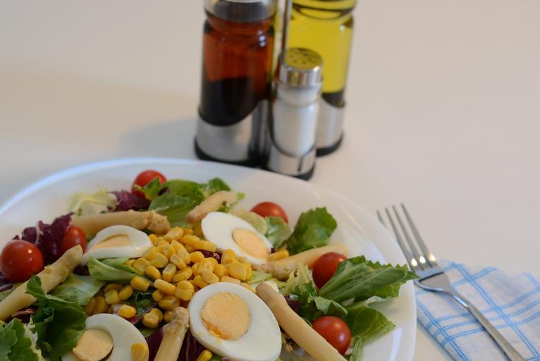 Keywords: salad corn lettuce asparagus oil tomato egg food